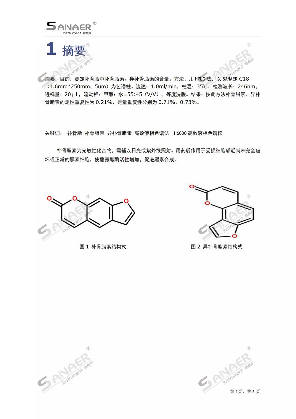 高效液相色譜儀測定補骨脂中補骨脂素、異補骨脂素的含量