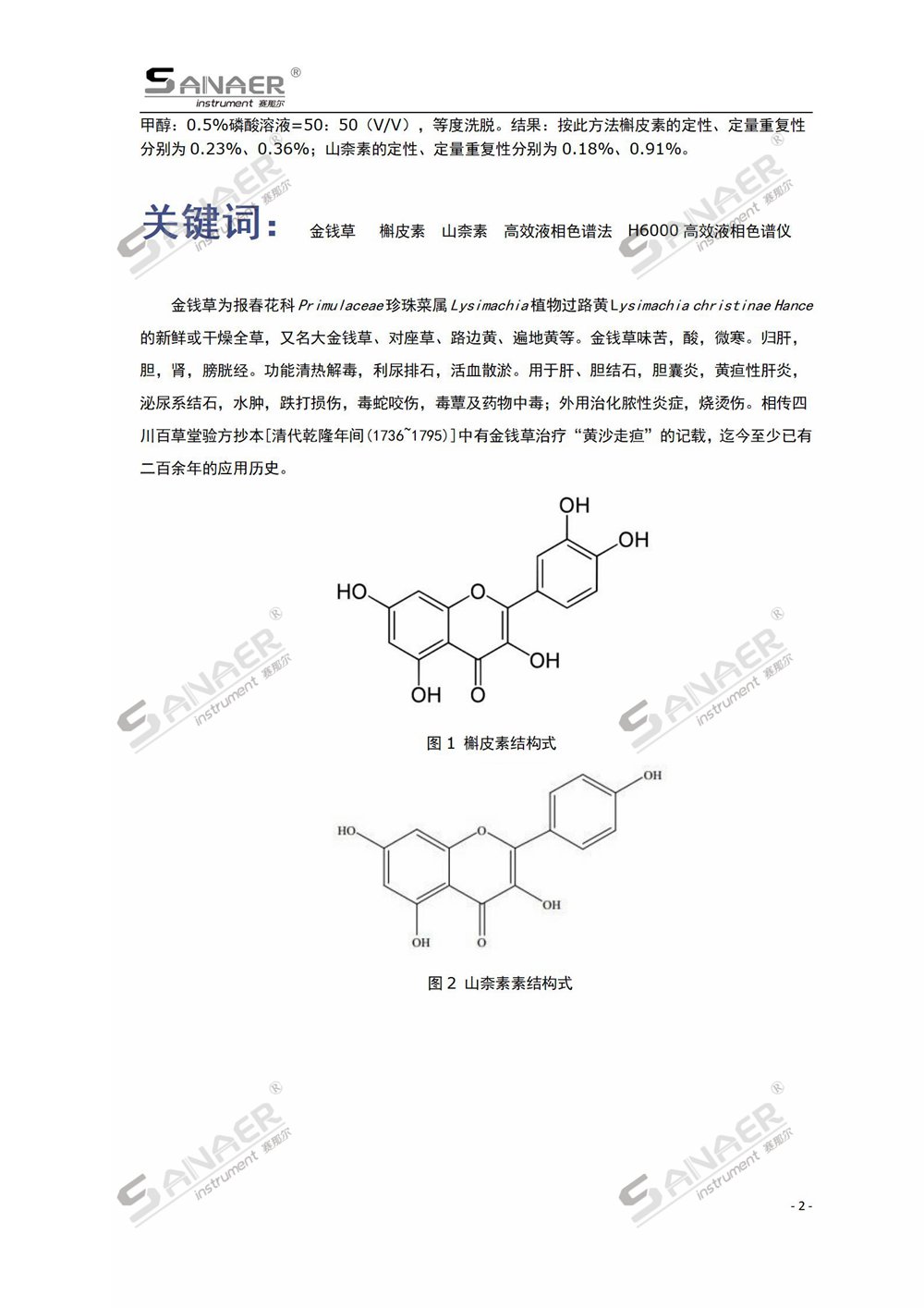 高效液相色譜法測定金錢草中槲皮素和山柰素的含量