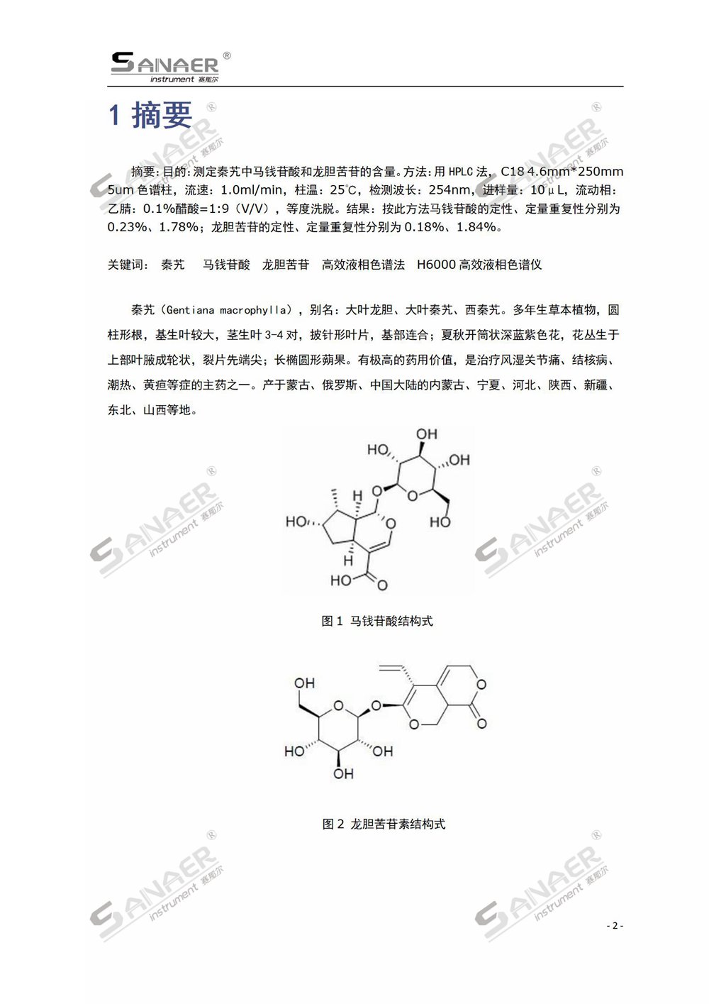 高效液相色譜法測定秦艽中馬錢苷酸和龍膽苦苷的含量