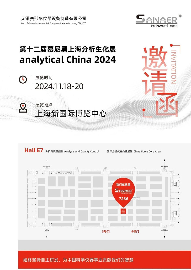 賽那爾儀器SAINAER誠摯邀請您參加將于2024年11月18日至20日在上海新國際博覽中心N1-N5 & E6-E7館盛大舉行的第十二屆慕尼黑上海分析生化展(analytical China 2024)。